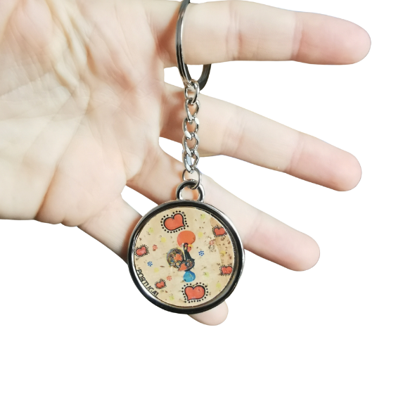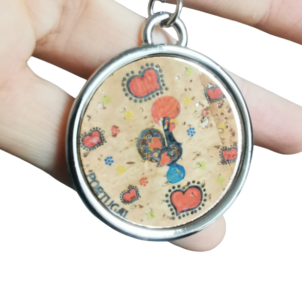 ✔ Metalowy breloczek, zawieszka do kluczy pokryty korkiem z tradycyjnym kogutem z Barcelos i napisem Portugal. Kogut z Barcelos znany jest jako symbol szczęścia i obfitości.