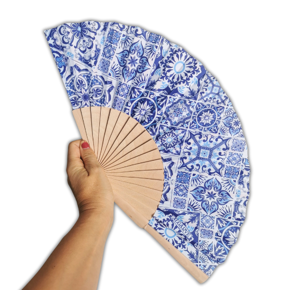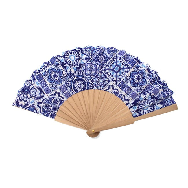 Drewniany wachlarz Algarve z Portugalii - mozaika azulejo niebieski