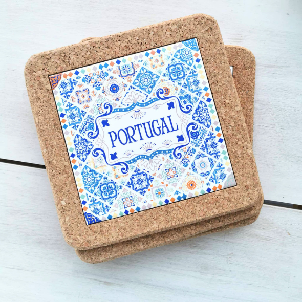 ✔ Gruba, kwadratowa, dekoracyjna korkowa podstawka pod gorący garnek czy czajnik z herbatą z płytką ceramiczną azulejo z typowym portugalskim motywem kolorowej mozaiki i napisem Portugal to gratka dla miłośników tego kraju.