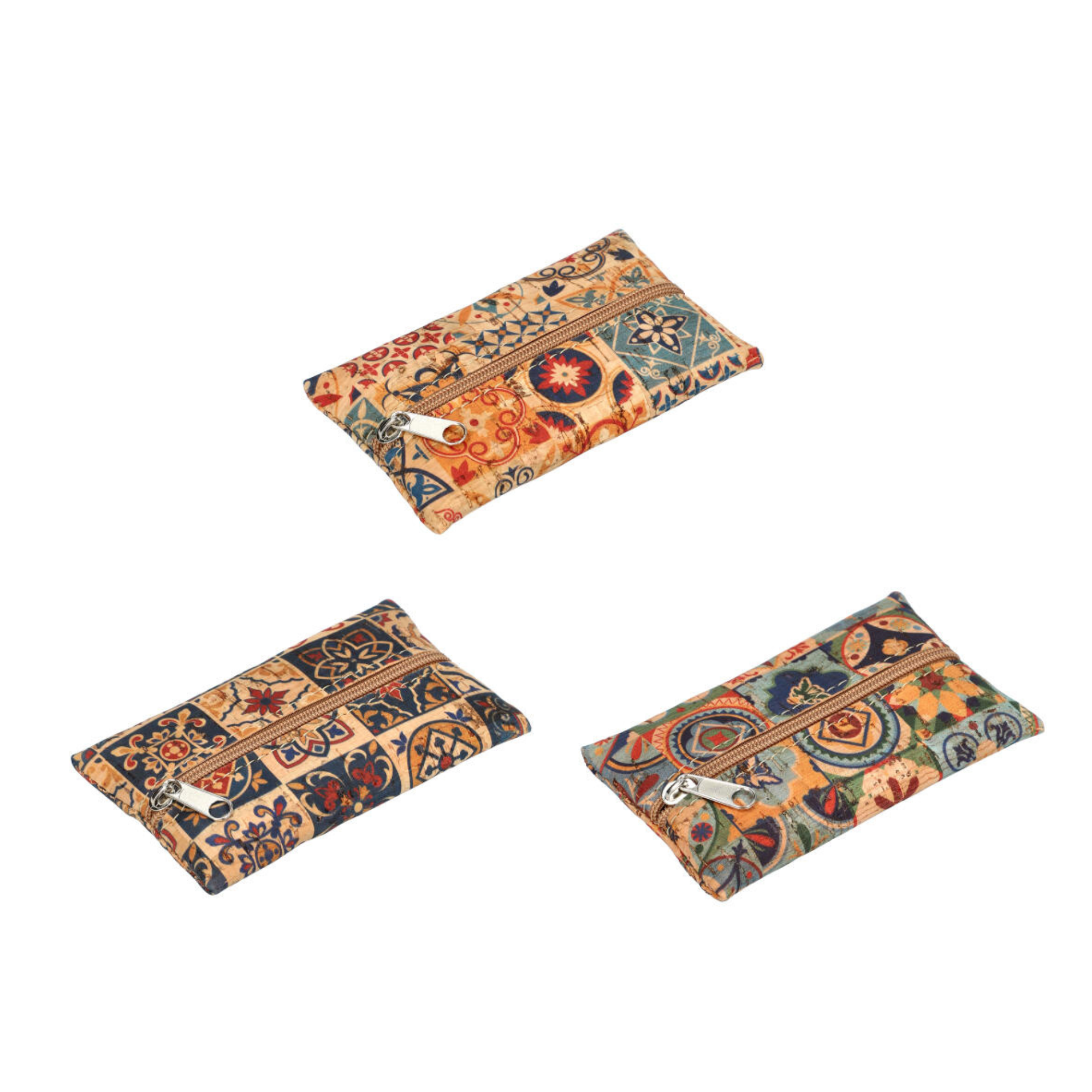 ✔ Piękny, mały portfelik z naturalnego korka w typowy portugalski wzór kafelkowych mozaik zapinany na zamek błyskawiczny idealny dla minimalistów.
