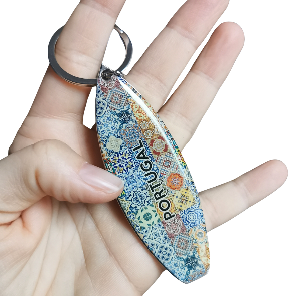 ✔ Metalowy otwieracz do piwa w kształcie deski surfingowej w kolorowe kafelki i napisem Portugal świetny dla fanów Portugalii.