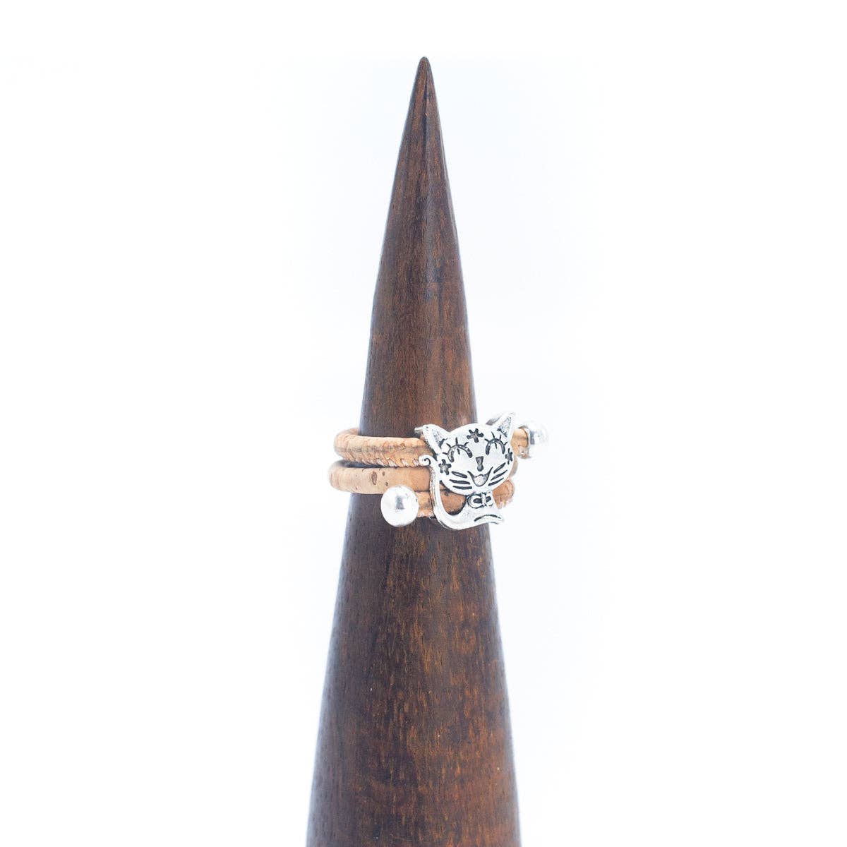 ✔ Oryginalny pierścionek ręcznie robiony z naturalnego korka z motywem kota dostępny w różnych kolorach.