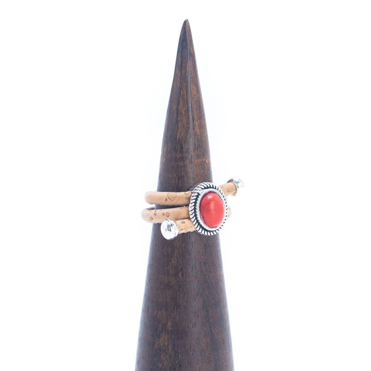 Pierścionek damski Red z korka - wykonany ręcznie - regulowany - czerowny