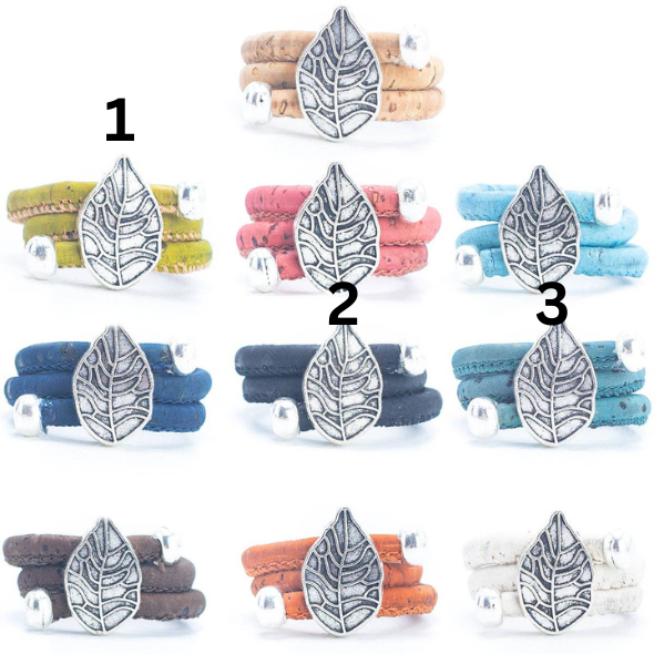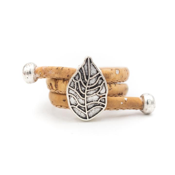 ✔ Oryginalny pierścionek ręcznie robiony z naturalnego korka z liściem dostępny w różnych kolorach.