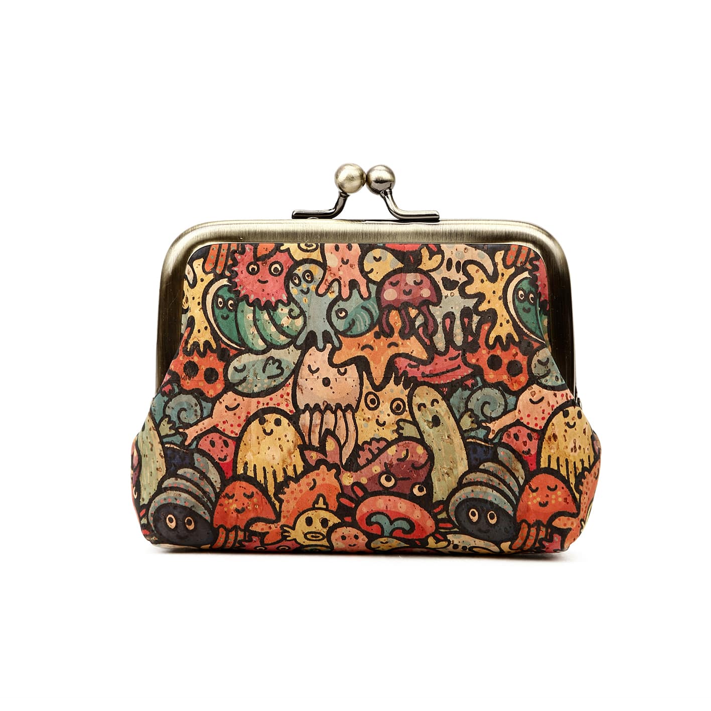Wegańska portmonetka retro Monsters z korka na bigiel hipsterskie potworki