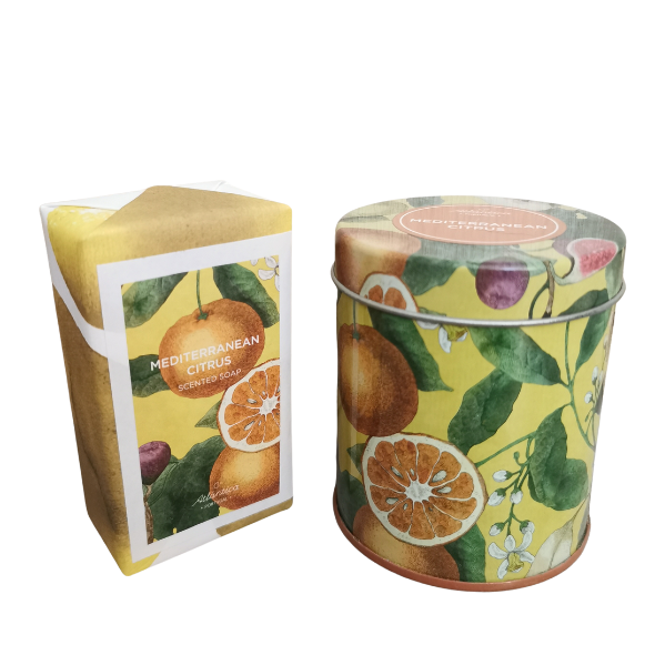 Zestaw limitowany: Mydło 150 g + Świeca w Puszce – Śródziemnomorska Cytrusowa Kompozycja