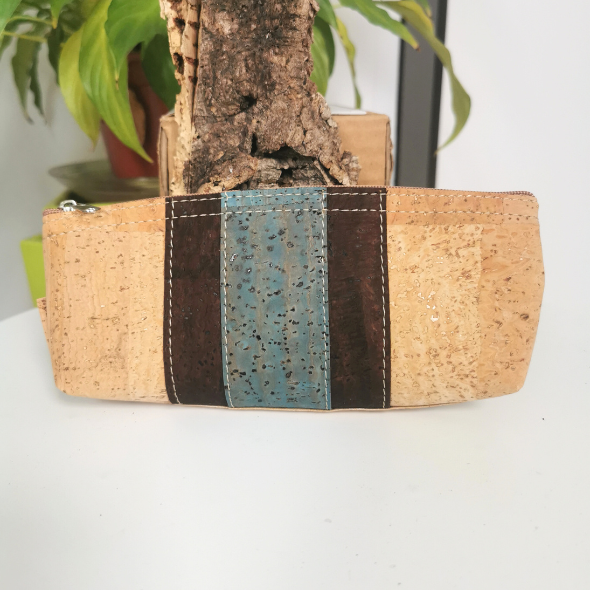 Eko piórnik - wegańska saszetka ze skóry korkowej trójkolorowa